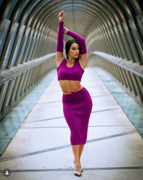 🌸 Magenta Passion Set 🌸 Vestido dos piezas en tejido texturizado púrpura vibrante: top crop con mangas dramáticas + midi tube ceñida y knotted waist. ¡El outfit que grita elegancia sensual!